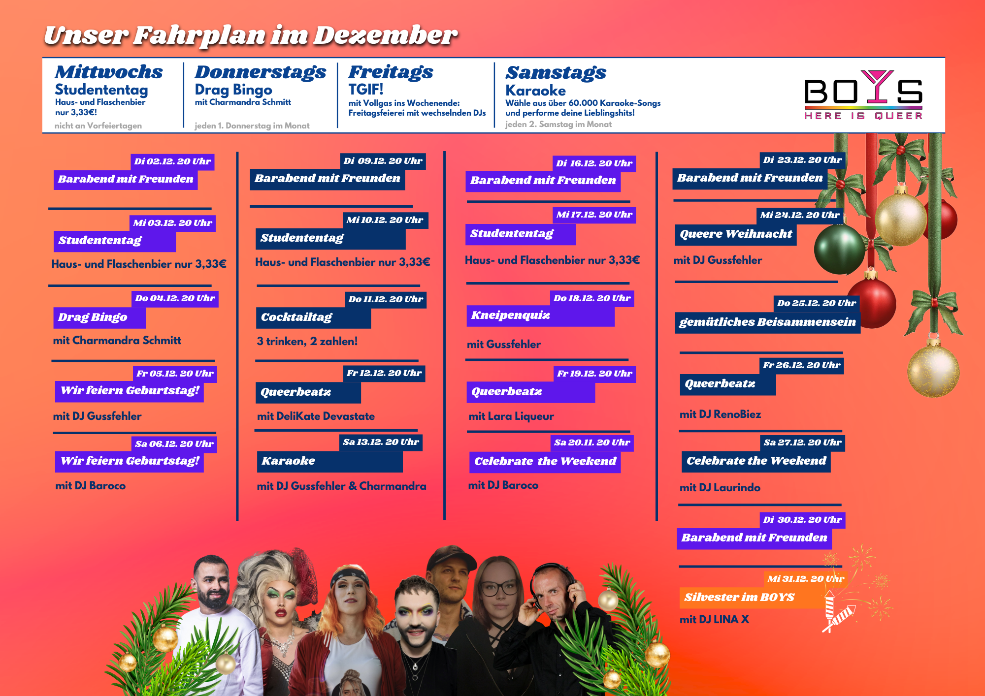 Dezember Events der Boys Bar